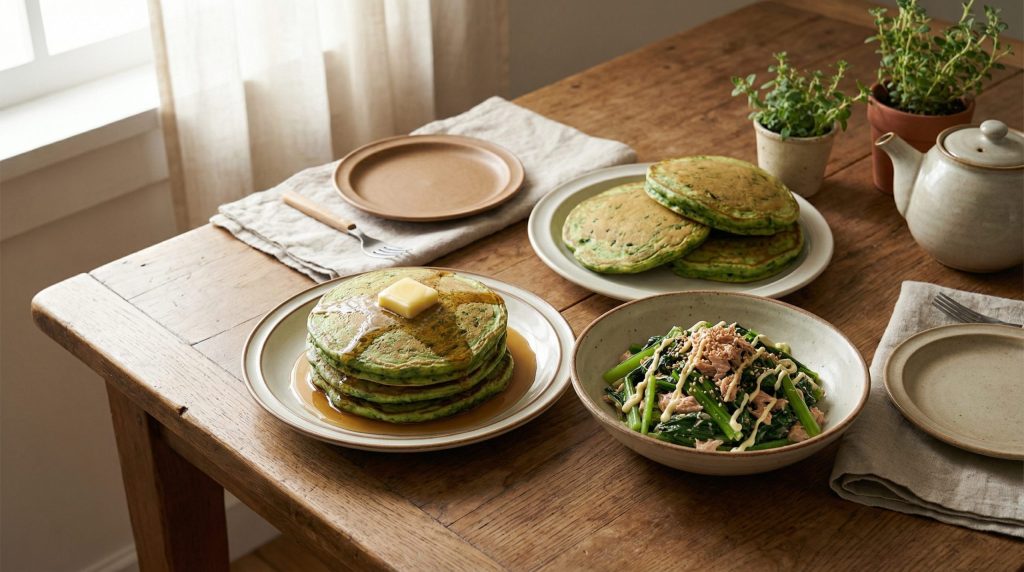 🥞 ① ふわふわ緑のパンケーキ(ほうれん草)