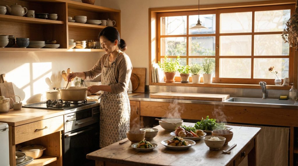 - 包丁とまな板を極力使わない:キッチンバサミやスライサー、手でちぎる工程を取り入れるだけで、後片付けが劇的にラクになります。
